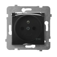 Gniazdo bryzgoszczelne z uziemieniem IP44 wieczko przezroczyste SONATA czarny matowy