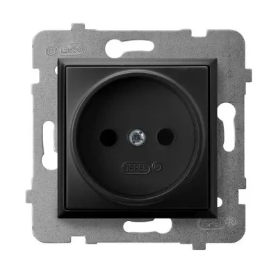 Gniazdo pojedyncze łączy funkcjonalność z nowoczesnym wyglądem. Czarna kolorystyka pozwala wyróżnić instalację lub dopasować ją do ciemniejszych elementów wystroju wnętrza.