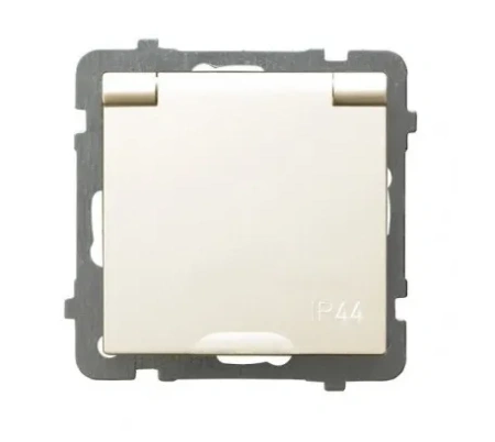 Gniazdo pojedyncze z uziemieniem bryzgoszczelne 16A Ospel AS ecru