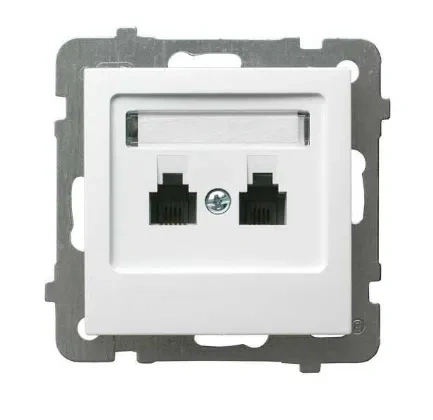 Gniazdo telefoniczne z serii AS przeznaczone do obsługi dwóch niezależnych linii telefonicznych. Klasyczny biały kolor zapewnia uniwersalne dopasowanie do różnych aranżacji wnętrz.