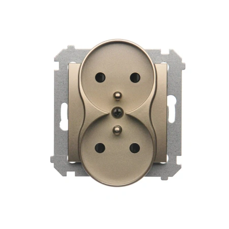Gniazdo podwójne DGZ2MZ.01/44 w kolorze złoty mat umożliwia bezpieczne podłączenie dwóch urządzeń jednocześnie. Matowe, złote wykończenie nadaje elegancki wygląd i pasuje do stylowych wnętrz.