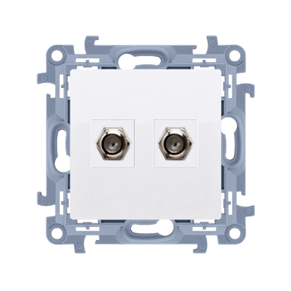 Gniazdo antenowe typu F podwójne z serii Simon 10 przeznaczone jest do instalacji końcowych systemów RTV-SAT, w których wymagane jest wyprowadzenie dwóch przewodów antenowych. Kompaktowa konstrukcja i biały kolor zapewniają estetyczne wykończenie instalacji.