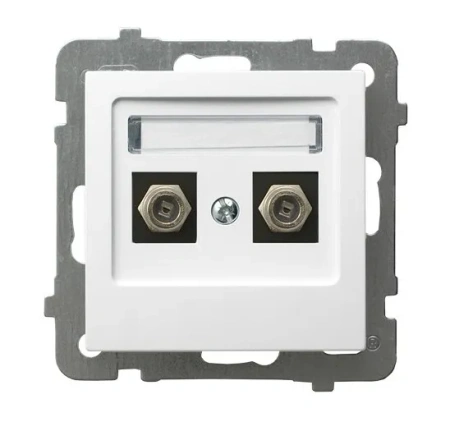 Podwójne gniazdo antenowe typu F z serii AS umożliwia wygodne podłączenie dwóch przewodów antenowych. Białe wykończenie sprawia, że element prezentuje się estetycznie i uniwersalnie.