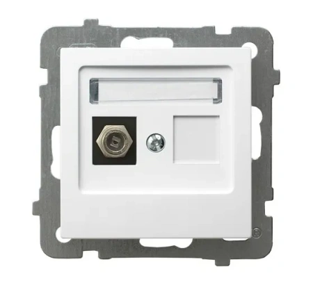 Pojedyncze gniazdo antenowe typu F z serii AS zapewnia niezawodne podłączenie przewodów sygnałowych do urządzeń RTV. Białe wykończenie nadaje mu uniwersalny i estetyczny charakter.