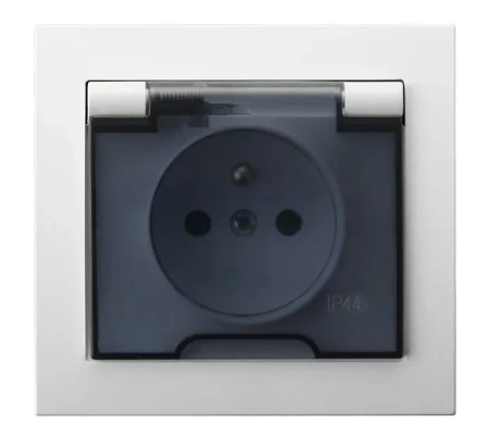Białe gniazdo bryzgoszczelne z serii Kier oferuje bezpieczne podłączenie urządzeń elektrycznych w miejscach o podwyższonej wilgotności. Klapka ochronna oraz stopień ochrony IP44 zwiększają bezpieczeństwo użytkowania.