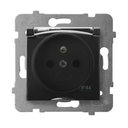 Gniazdo bryzgoszczelne z uziemieniem IP44 Ospel ARIA czarny metalik