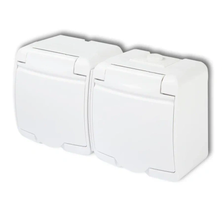 Gniazdo podwójne z uziemieniem 2x (2P+Z) (klapka biała, bez przesłon) biały hermetyczny JUNIOR