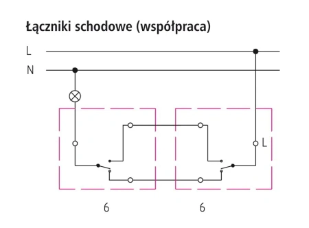 Stosowany w instalacjach oświetleniowych na klatkach schodowych, w korytarzach oraz pomieszczeniach, gdzie wymagane jest sterowanie światłem z dwóch punktów.