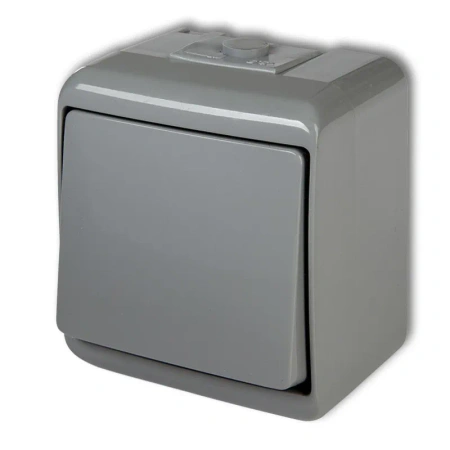 Łącznik jednobiegunowy do włączania i wyłączania jednego obwodu oświetleniowego w instalacjach natynkowych.