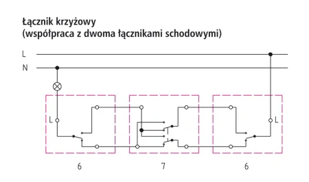 Biały łącznik krzyżowy SONATA pozwala na wygodne sterowanie oświetleniem z więcej niż dwóch punktów. Jego estetyczna forma podkreśla nowoczesny charakter instalacji.