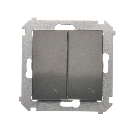 Łącznik schodowy podwójny Simon54 DW6/2.01/48 w kolorze antracyt umożliwia niezależne sterowanie dwoma obwodami oświetleniowymi w układzie schodowym. Matowe, antracytowe wykończenie nadaje mu elegancki charakter, idealnie dopasowany do nowoczesnych wnętrz.