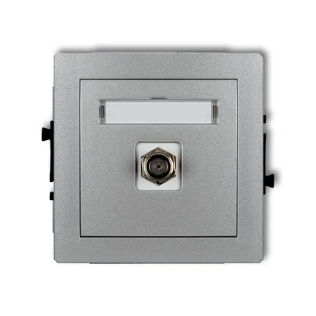 Mechanizm gniazda antenowego w wykończeniu srebrny metalik, przeznaczony do montażu w ramkach serii DECO.