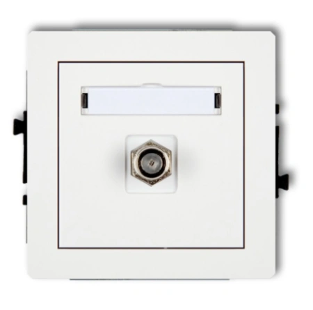 Gniazdo antenowe pojedyncze przeznaczone do montażu w ramkach serii DECO. Zapewnia estetyczne i funkcjonalne podłączenie instalacji RTV.