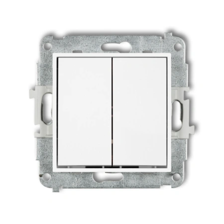 Mechanizm łącznika krzyżowego podwójnego do rozbudowanych instalacji sterowania oświetleniem. Wersja bez piktogramów.