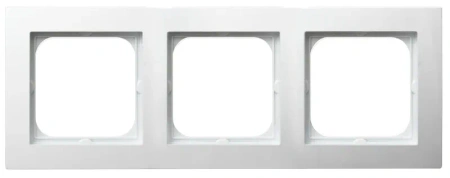 Ramka potrójna z serii AS pozwala na estetyczny montaż trzech modułów osprzętu w jednym układzie. Białe wykończenie zapewnia spójność wizualną instalacji w każdym pomieszczeniu.
