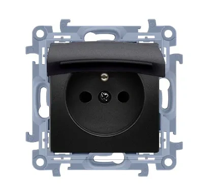 Simon10 Gniazdo wtyczkowe z przes+ klapka czarne