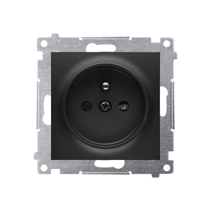 Gniazdo wtyczkowe w czarnym, matowym wykończeniu wyposażone jest w uziemienie i przesłony torów prądowych, co zwiększa bezpieczeństwo użytkowania. Idealne do nowoczesnych wnętrz mieszkalnych i biurowych.