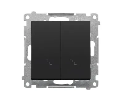 Łącznik schodowy podwójny Simon 55 w wykończeniu czarny mat umożliwia niezależne sterowanie dwiema sekcjami oświetlenia z dwóch lokalizacji. Jego matowa powierzchnia podkreśla nowoczesny, elegancki styl wnętrza.