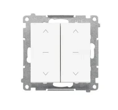 Podwójny łącznik żaluzjowy z serii Simon 55 w wykończeniu biały mat umożliwia sterowanie dwiema roletami lub żaluzjami. Trójpozycyjny mechanizm (1-0-2) zapewnia wygodną kontrolę kierunku ruchu osłon okiennych, a matowa powierzchnia nadaje produktowi subtelny, nowoczesny wygląd.