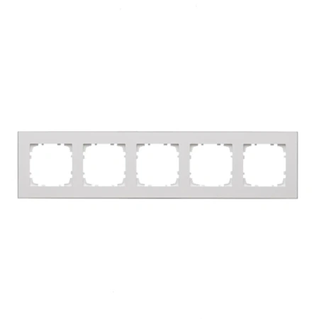 Ramka 5-krotna z serii Simon 55 w białym kolorze z elegancką złotą podstawą pozwala estetycznie połączyć pięć modułów osprzętu w jednej linii. Połączenie kolorów tworzy dekoracyjny akcent, który podkreśla charakter wnętrza.