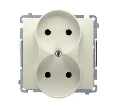 Podwójne gniazdo beżowe przeznaczone do urządzeń niewymagających uziemienia. Umożliwia wygodne podłączenie dwóch odbiorników jednocześnie.