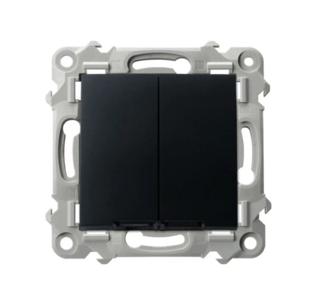 Łącznik łączy funkcjonalność sterowania dwoma obwodami z eleganckim wyglądem. Podświetlenie zwiększa wygodę codziennego użytkowania, a kolor czarny metalik nadaje instalacji nowoczesny charakter.